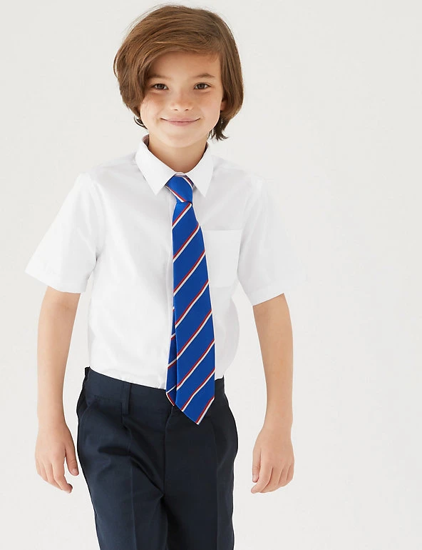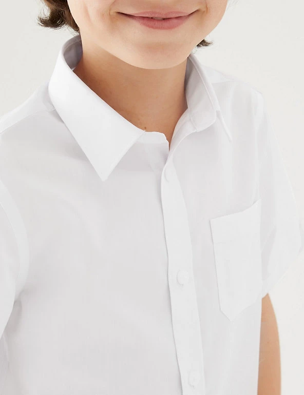 Regular fit, Button fastening, Short sleeve, Stain resistant, Non iron technology, Easy close up to age 8 years only