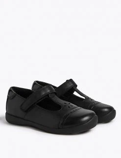 Made in a stylish T-bar design with perforated detailing along the front, these leather school shoes make a smart addition to their uniform. Made with an antibacterial finish they stay fresher for longer, preventing odoursas well as a non marking sole. A riptape fastening helps with easy dressing.